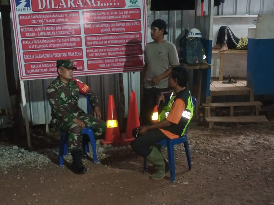 Dalam kegiatan tersebut, Babinsa berdialog langsung dengan petugas security, termasuk Bapak Surya, guna membahas kondisi keamanan di lingkungan proyek pembangunan. Fokus pembahasan meliputi upaya peningkatan kewaspadaan terhadap potensi gangguan kamtibmas, terutama dalam menjaga aset, material, dan peralatan proyek.