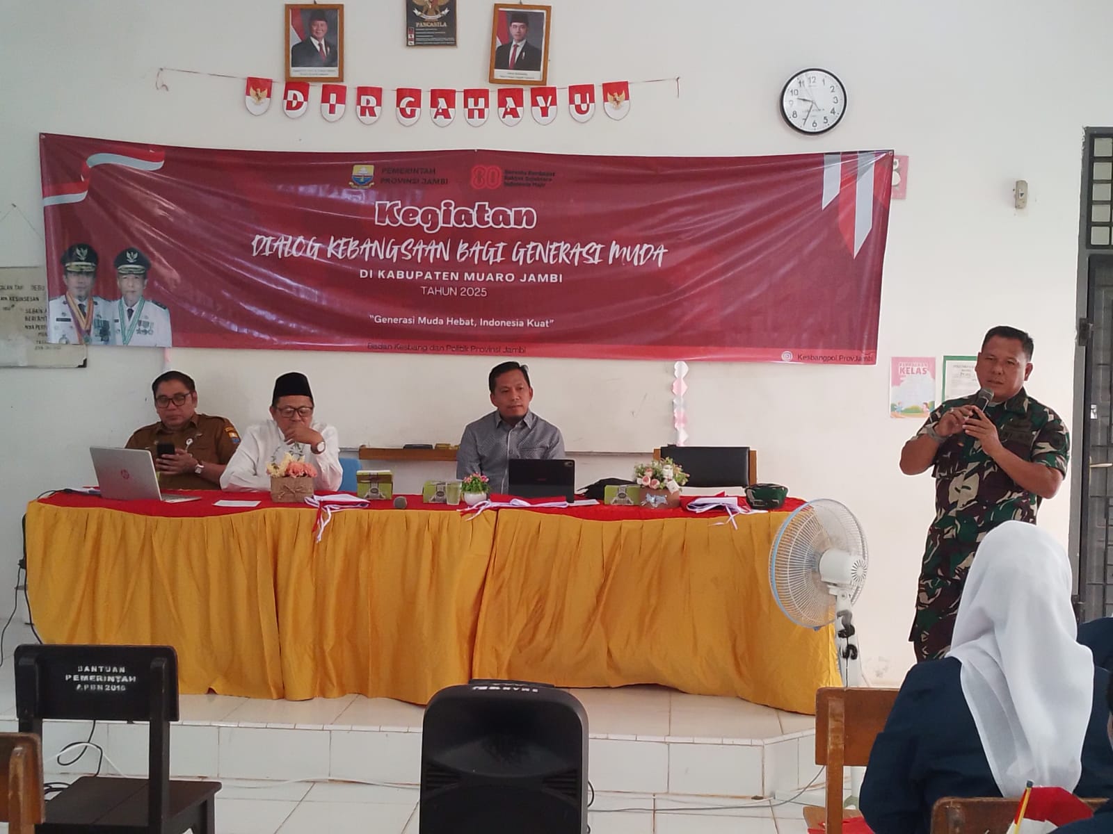 Dalam upaya tersebut, Danramil 415-06/Pijoan Kodim 0415/Jambi, Kapten Inf Yulian Timur, memberikan materi Wawasan Kebangsaan (Wasbang) pada kegiatan Dialog Kebangsaan bagi generasi muda di SMAN 10 Desa Kebon IX, Kecamatan Sungai Gelam, Kabupaten Muaro Jambi, Senin (17/11/2025).