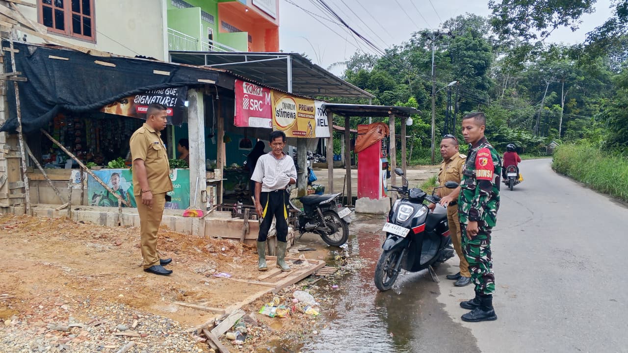 Tindak Lanjuti Keluhan Warga, Babinsa Eka Jaya Bersama Lurah, Lakukan Pengecekan Drainase.